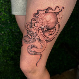 Art has been a lifelong journey for Cyn, who grew up dreaming of becoming a fashion designer, spending countless hours drawing and designing clothing. Coming from an artistic family, creativity has always been at the heart of her life. After becoming a mom of three and re-entering the workforce, Cyn sought a career that allowed her to continue creating. With encouragement from her husband’s cousin, a tattoo artist, she took the leap into tattooing, combining her love of drawing with a craft that turns art into meaningful, wearable pieces.
